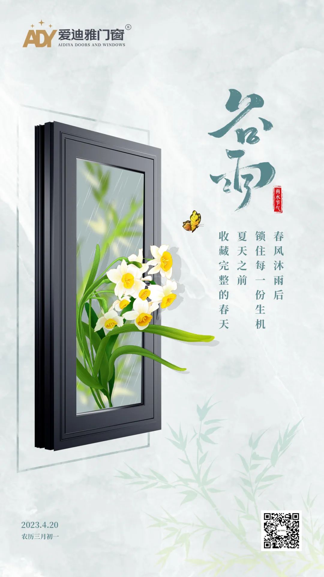 谷雨是春季的最后一個節氣,在這個春夏交接之際,天氣多變,愛迪雅門窗提醒您谷雨天氣忽冷忽熱,人易患感冒,應注意保暖,晝夜溫差大,早晚適時增添衣物,以免感冒。
